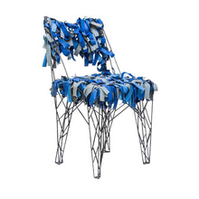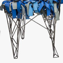 A Unique Sculptural Chair, loose shades of blue and grey leather upholstery on welded wrought irons By Anacleto Spazzapan