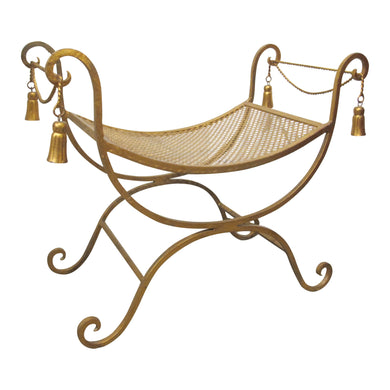 Mid-Century Italian Gilded X-Frame Curule Vanity Stool with Metal Mesh