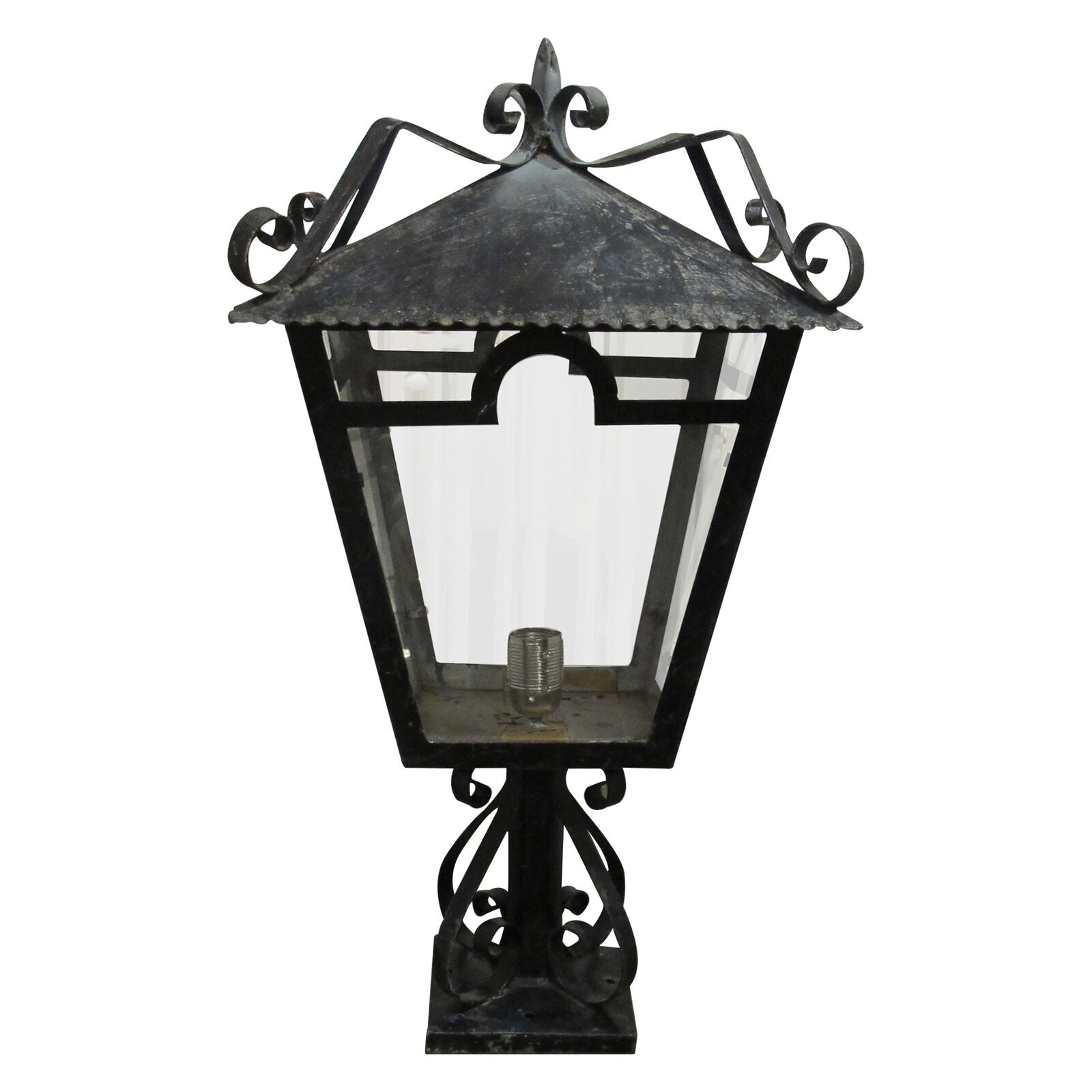 A Pair of French Wrought Iron Outdoor Pillar Lanterns, circa 1950