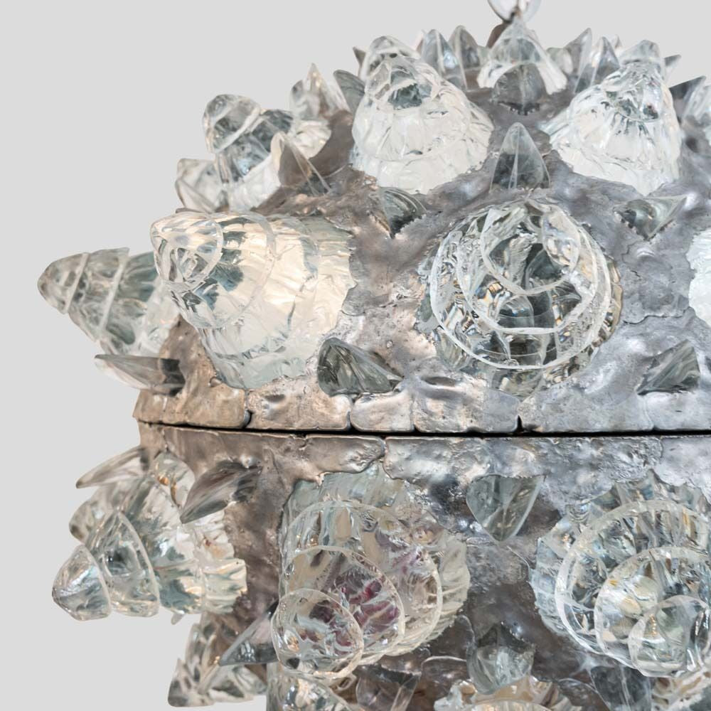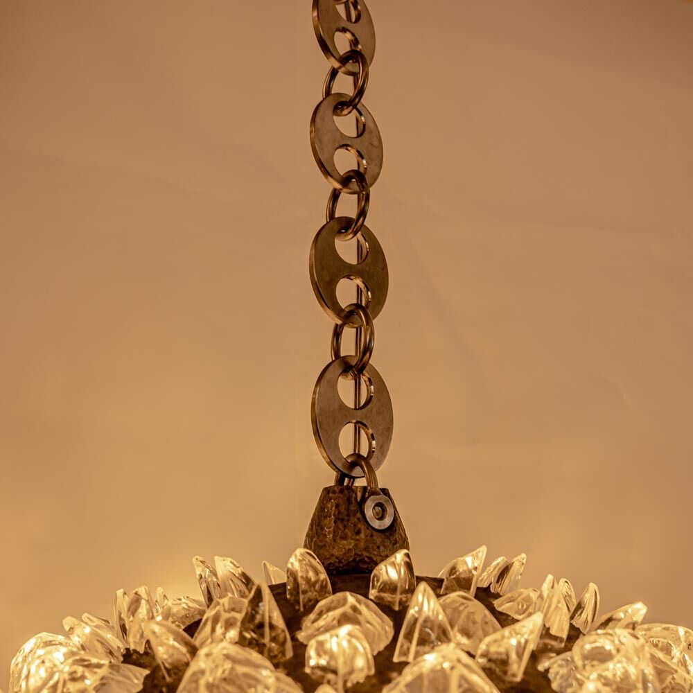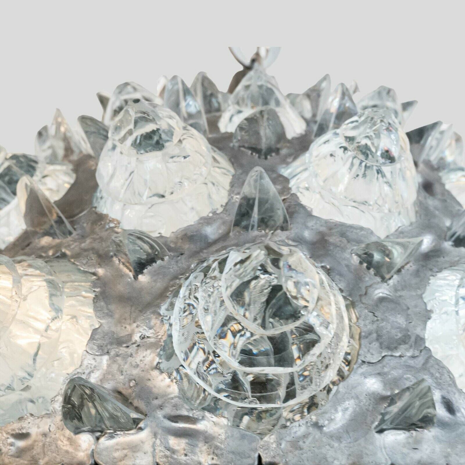 Sculptural ceiling light, clear glass rocks on metal structure Italian design by Campanella